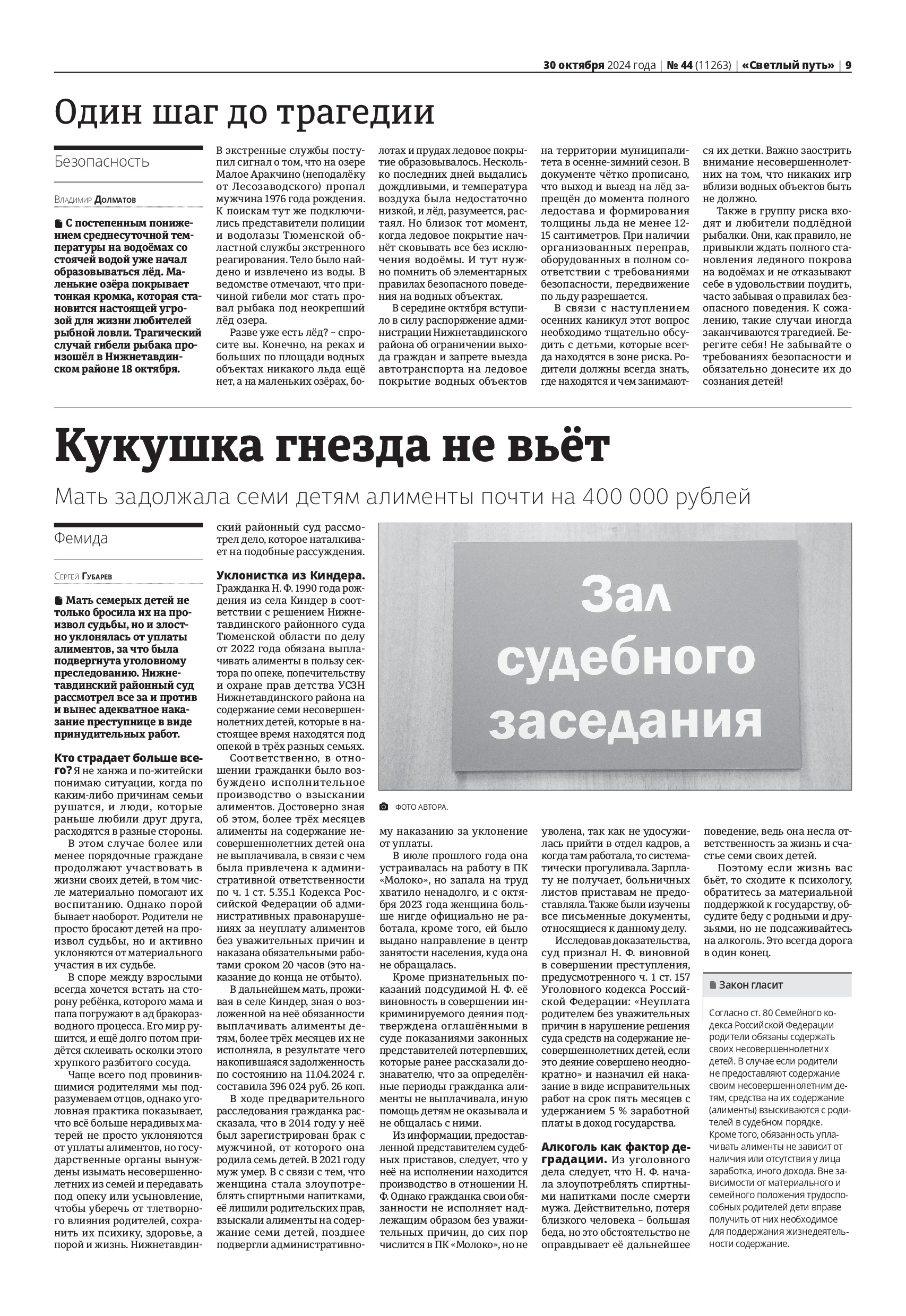 ![]() Статья в Общественно-политической газете «Светлый путь» №44 (11263) от 30 октября 2024 года |